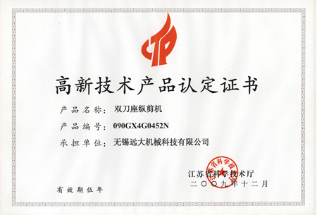 高品證書(雙刀座縱剪機(jī))