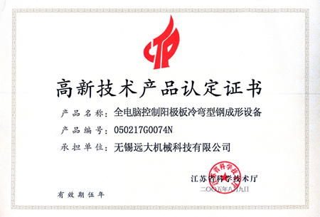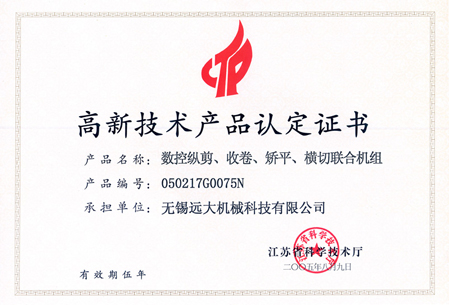 高品證書(數(shù)控縱剪、收卷、矯平機(jī)組)