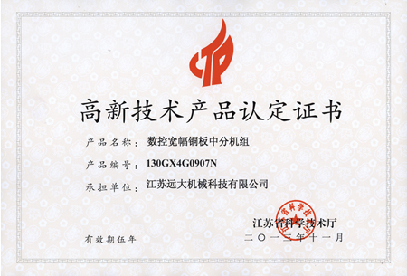 高品證書(數(shù)控寬幅銅板中分機(jī)組)