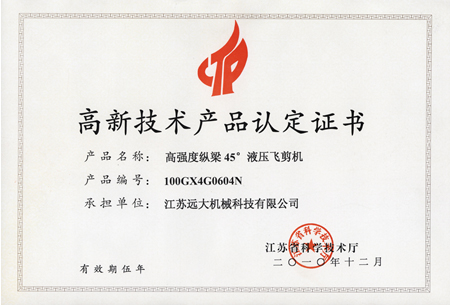 高品證書(高強(qiáng)度45飛剪機(jī))